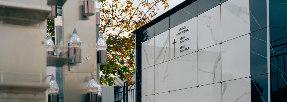 Urnový hrob: č.5 - Rozmer nápisnej dosky: 60x40cm a 40x40cm. Typ a farba písma: Romano - Leštený nerez